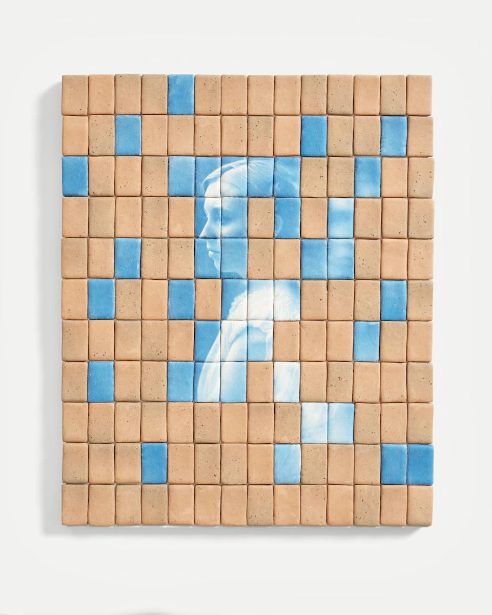 Cyanotype and ceramic on wood panel