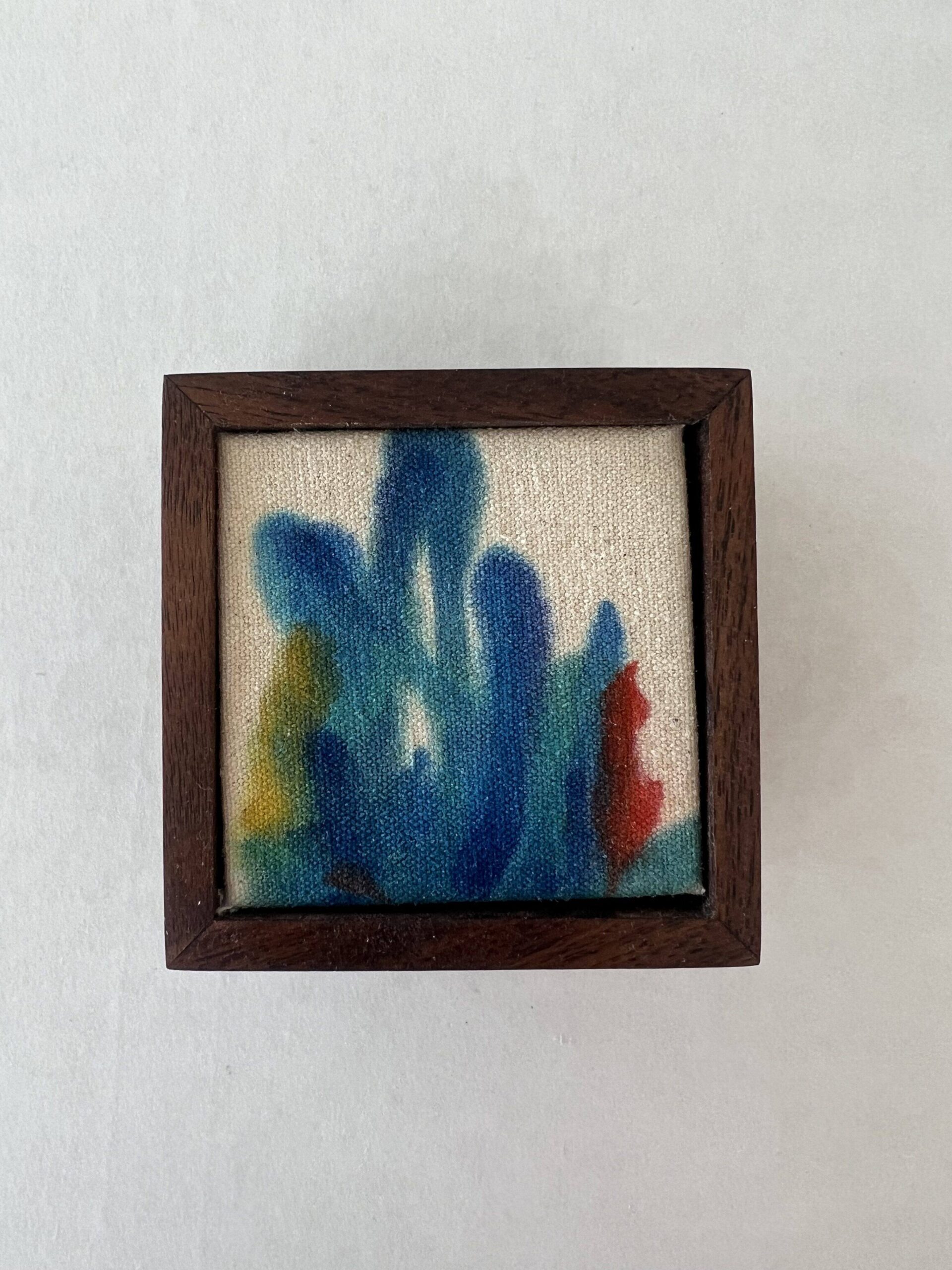 Proprietary color blend on raw canvas