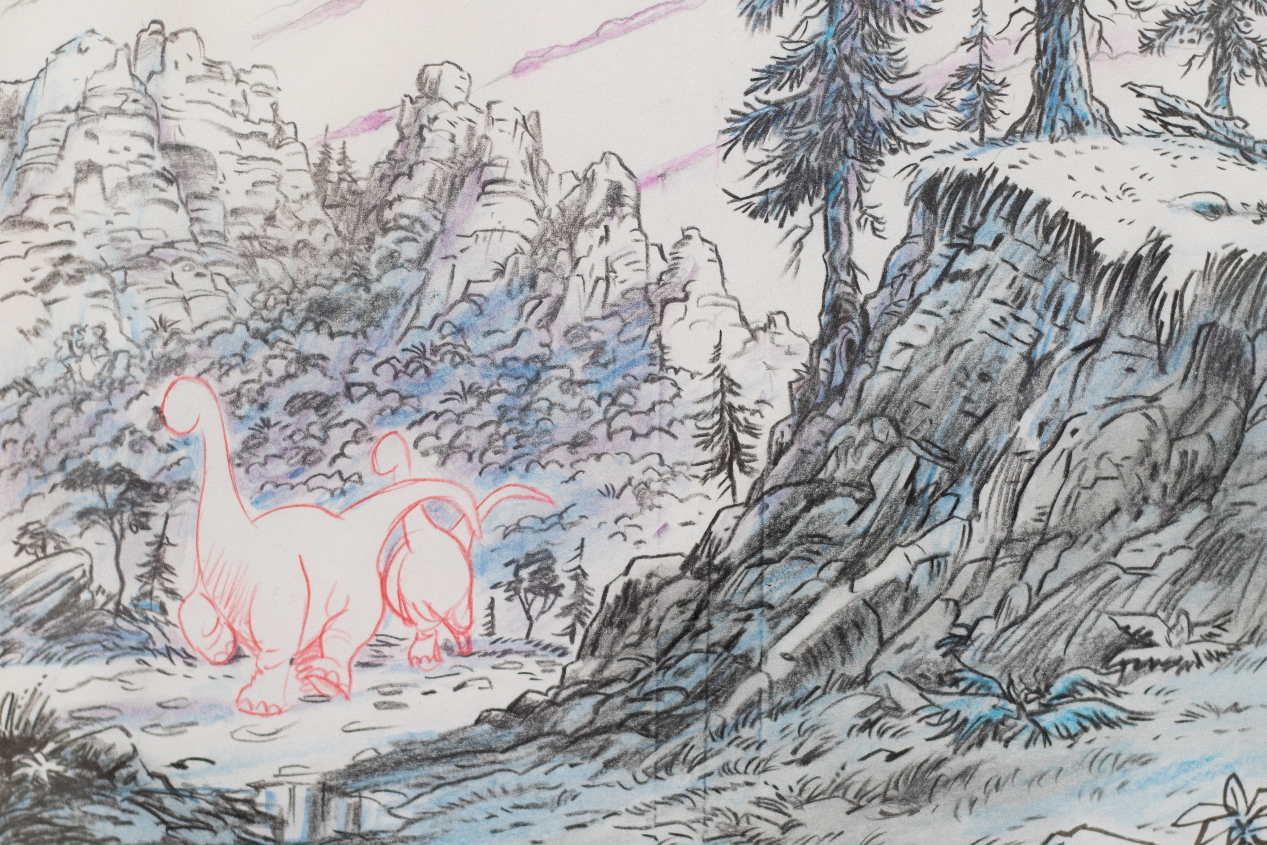 Graphite, colored pencil, and pen on paper